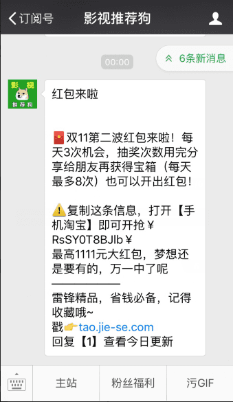 利用该电视剧全集资源做诱饵,引导粉丝关注公众号。
