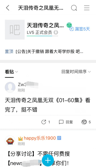 前几天发现一个电视剧的贴吧,天泪传奇之凤凰无双贴吧。